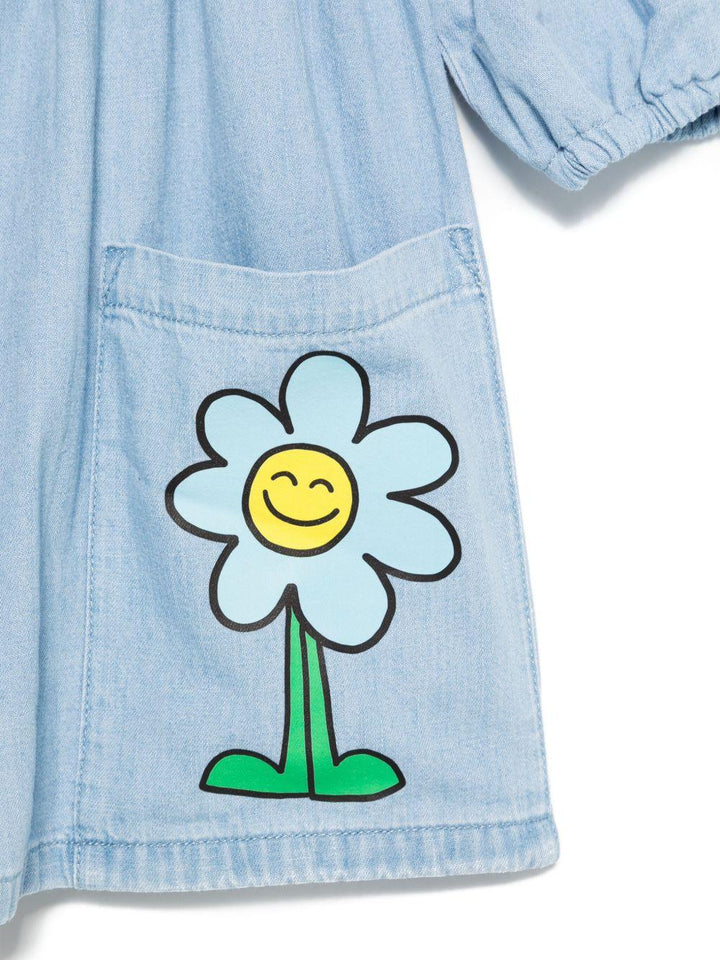 Abito in tessuto di cotone blu per bambina di Stella McCartney Kids.