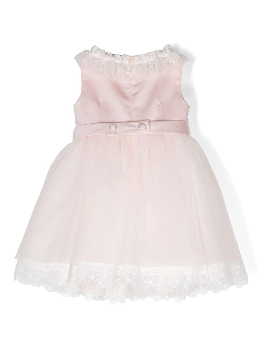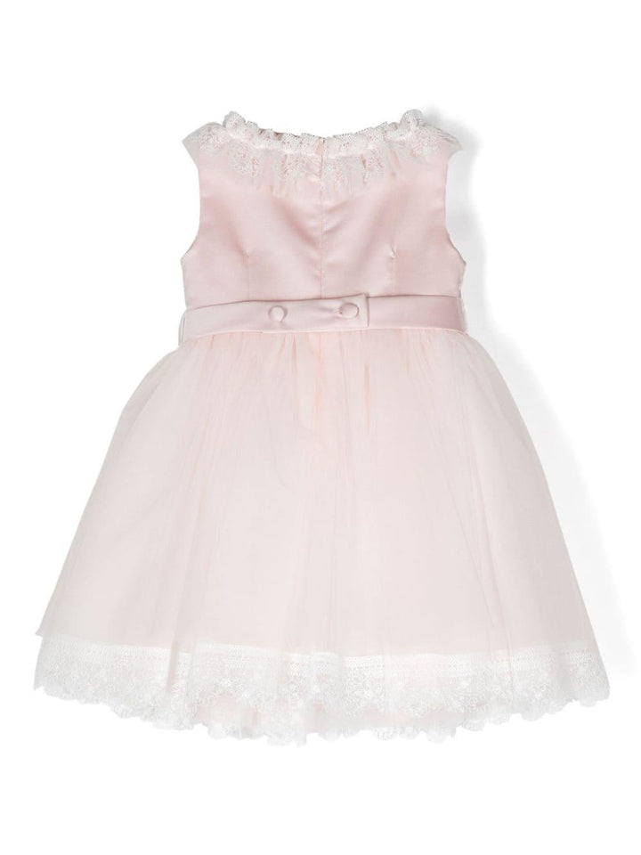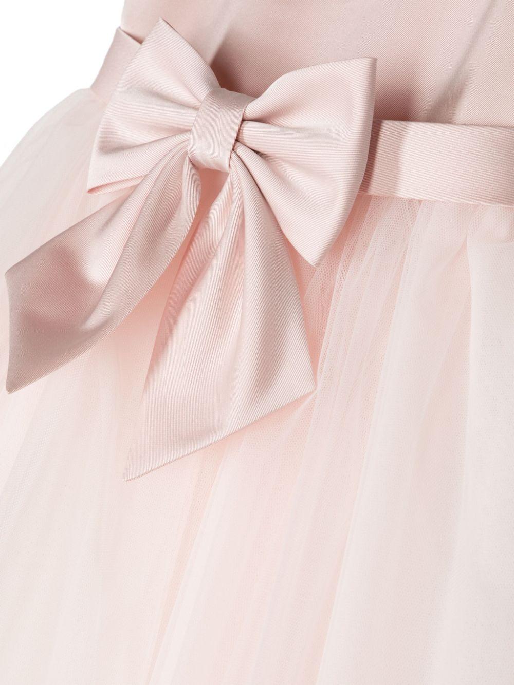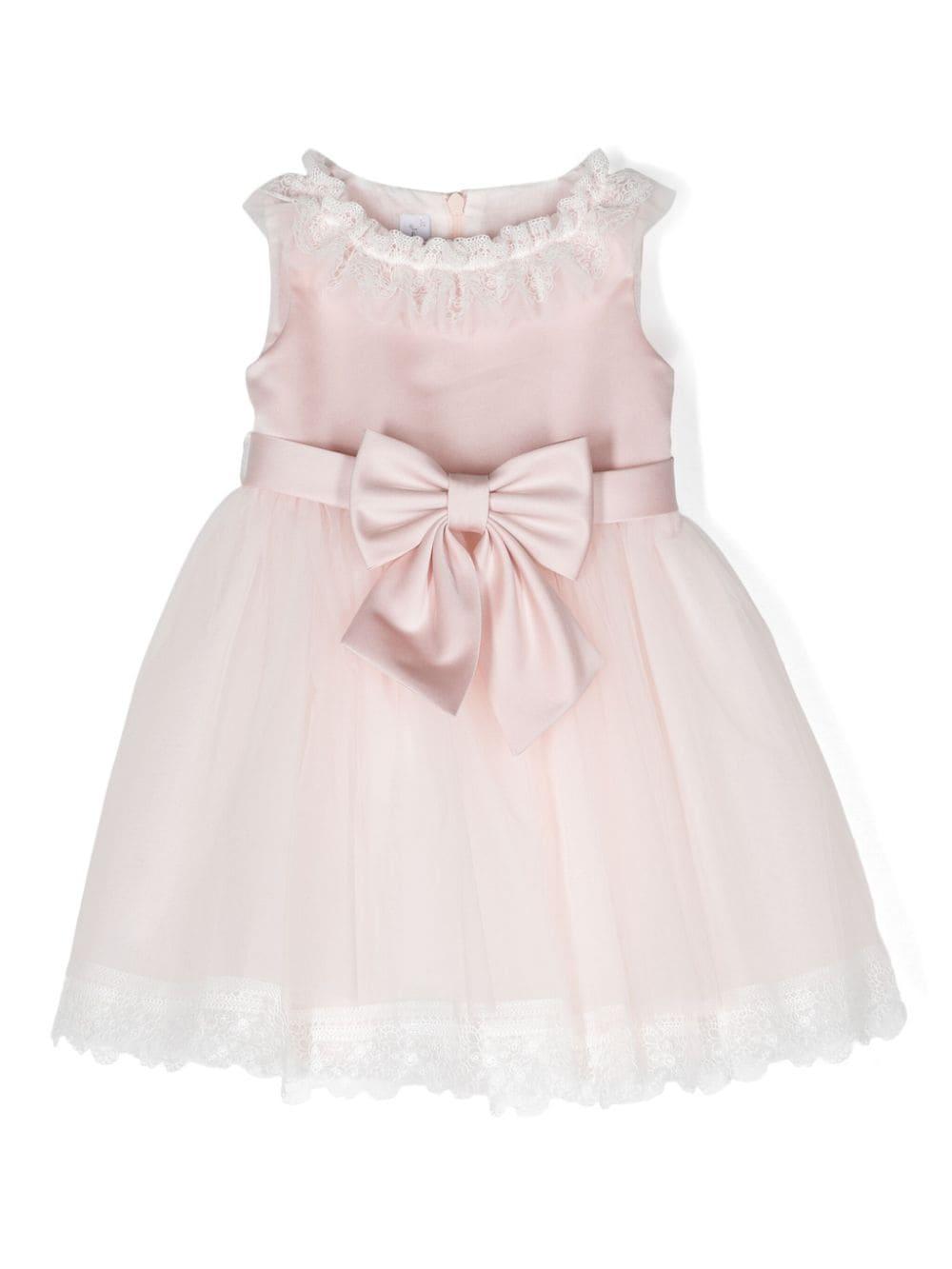 Pink tulle mesh dress for baby girls with bow detail by Colorichiari Kids.