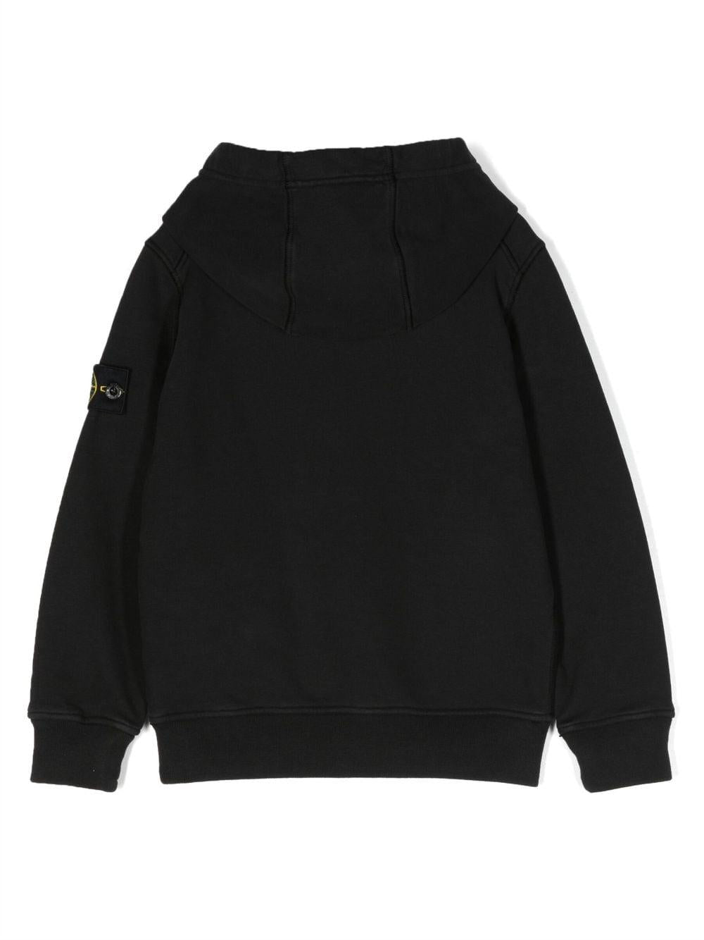 Black cotton hooded sweatshirt for boys with Compass patch by Stone Island Junior.