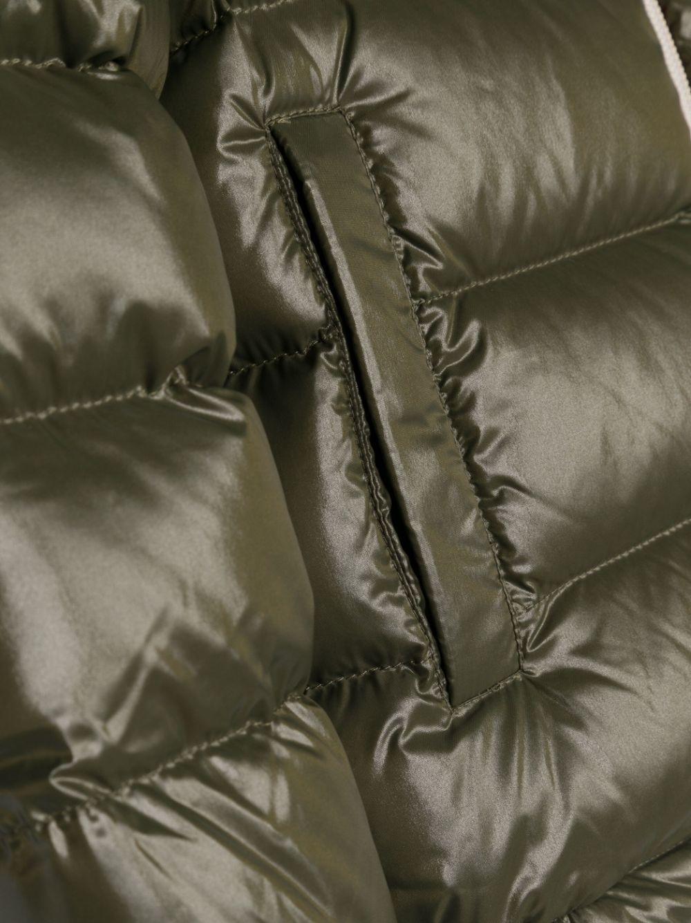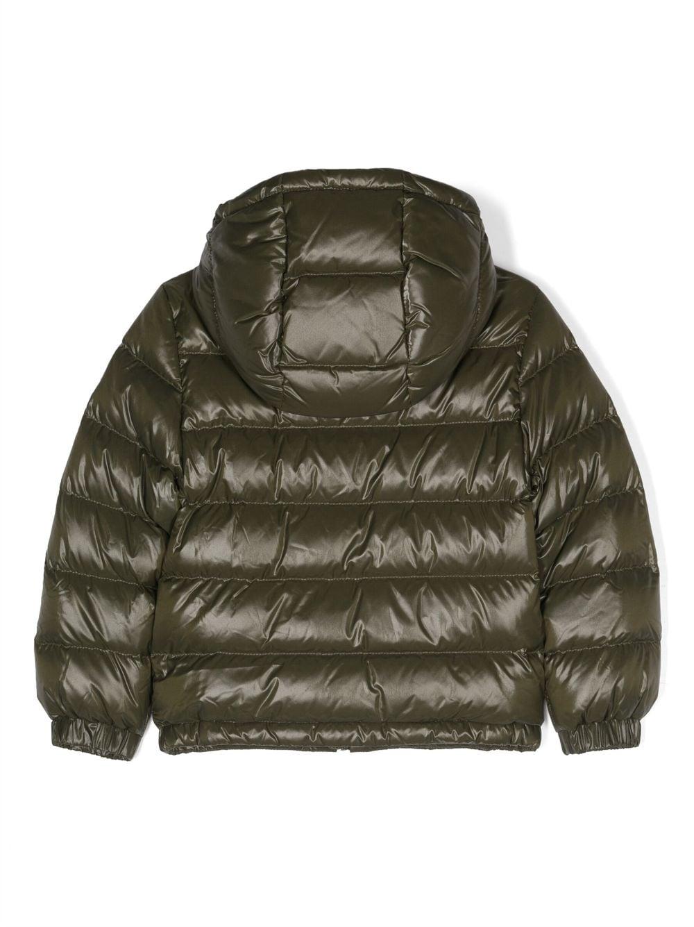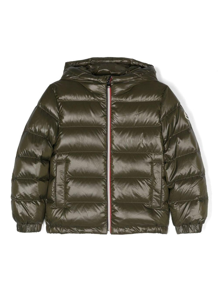 Giubbotto imbottito New Aubert verde oliva con toppa con logo sulla manica per bambino di Moncler Enfant.