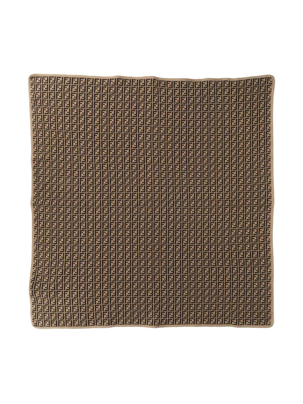 Coperta in misto cotone-cashmere marrone per neonato di Fendi Kids.