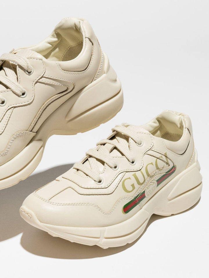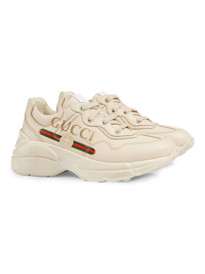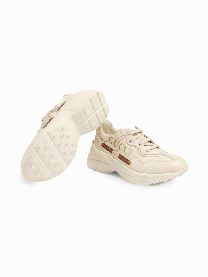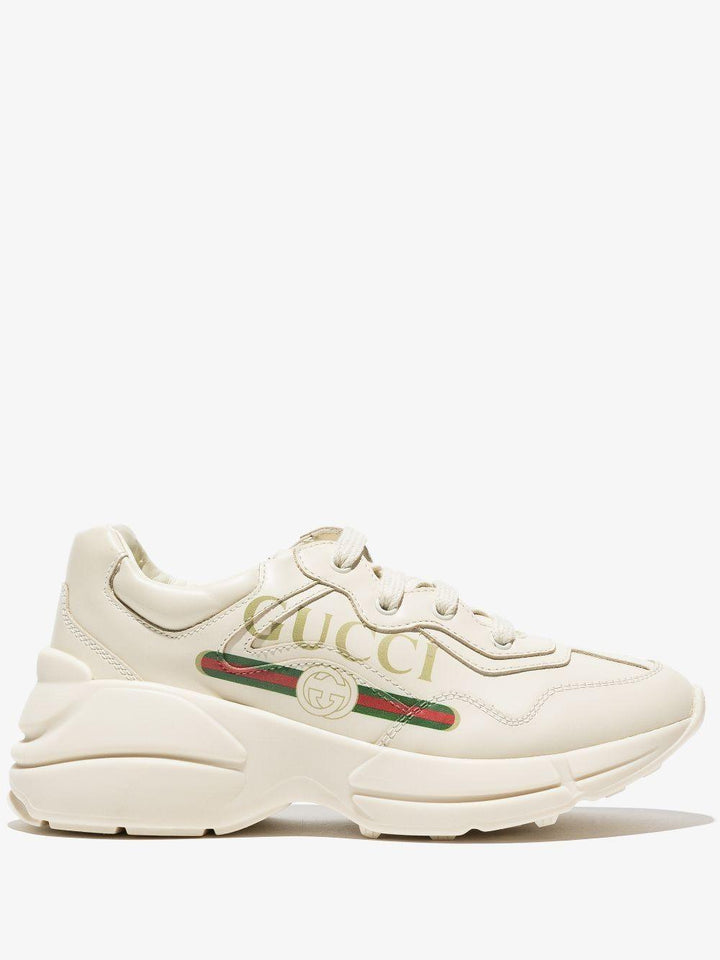Sneakers crema con logo Gucci per bambina di Gucci Kids in morbida pelle.
