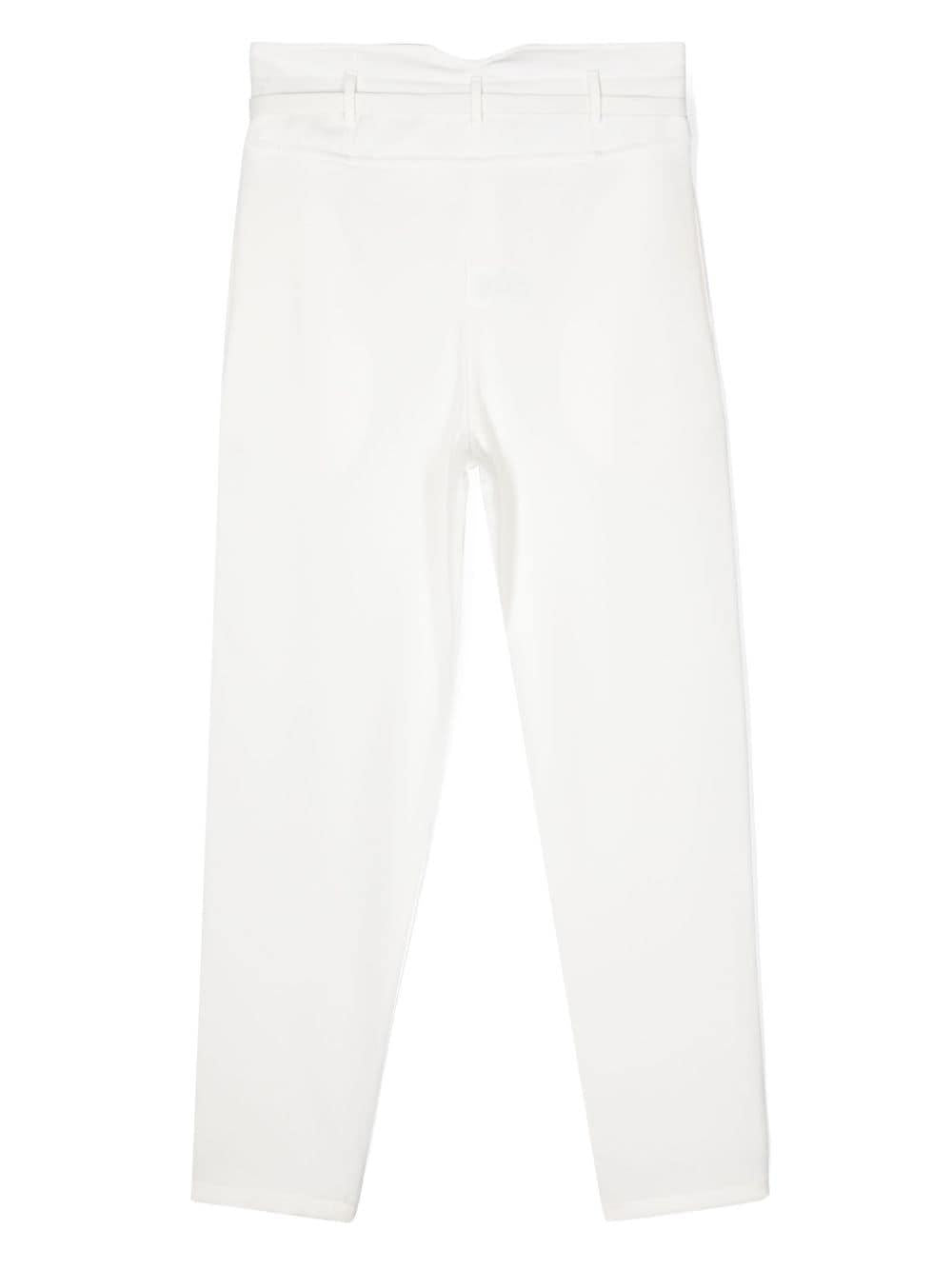 Pantalone bianco in cotone elasticizzato per bambina con fibbia con logo della collezione Pinko Kids.