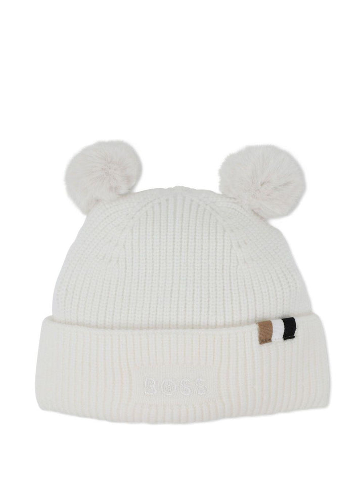 Set di berretto con 2 pompon in ecopelliccia + stivaletti con ricamo di Boss Kids.