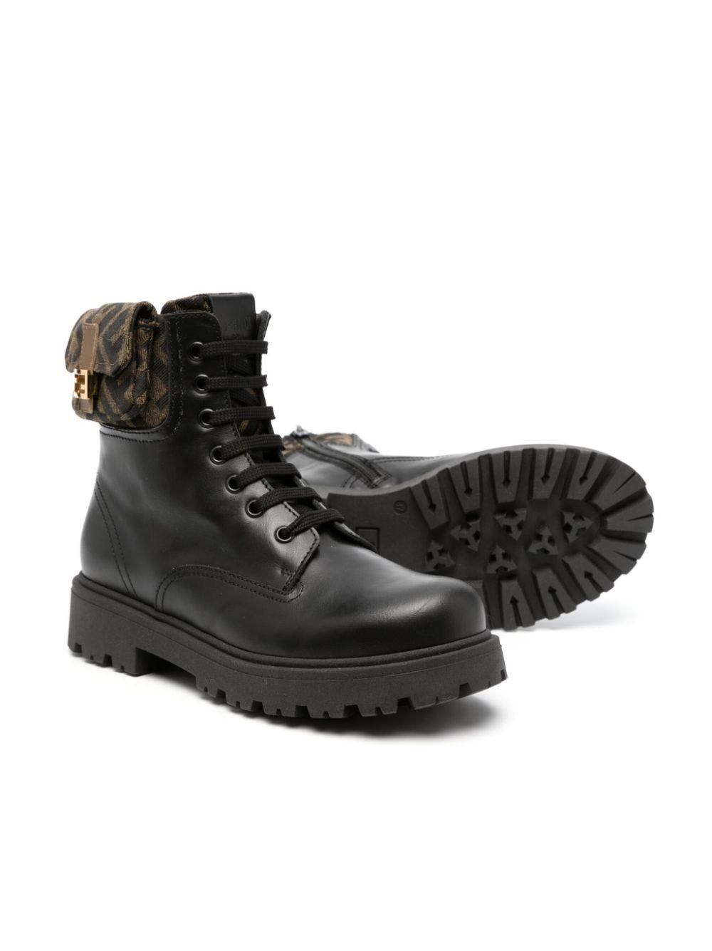 Stivali in pelledi vitello nera per bambina con stampa FF di Fendi Kids.
