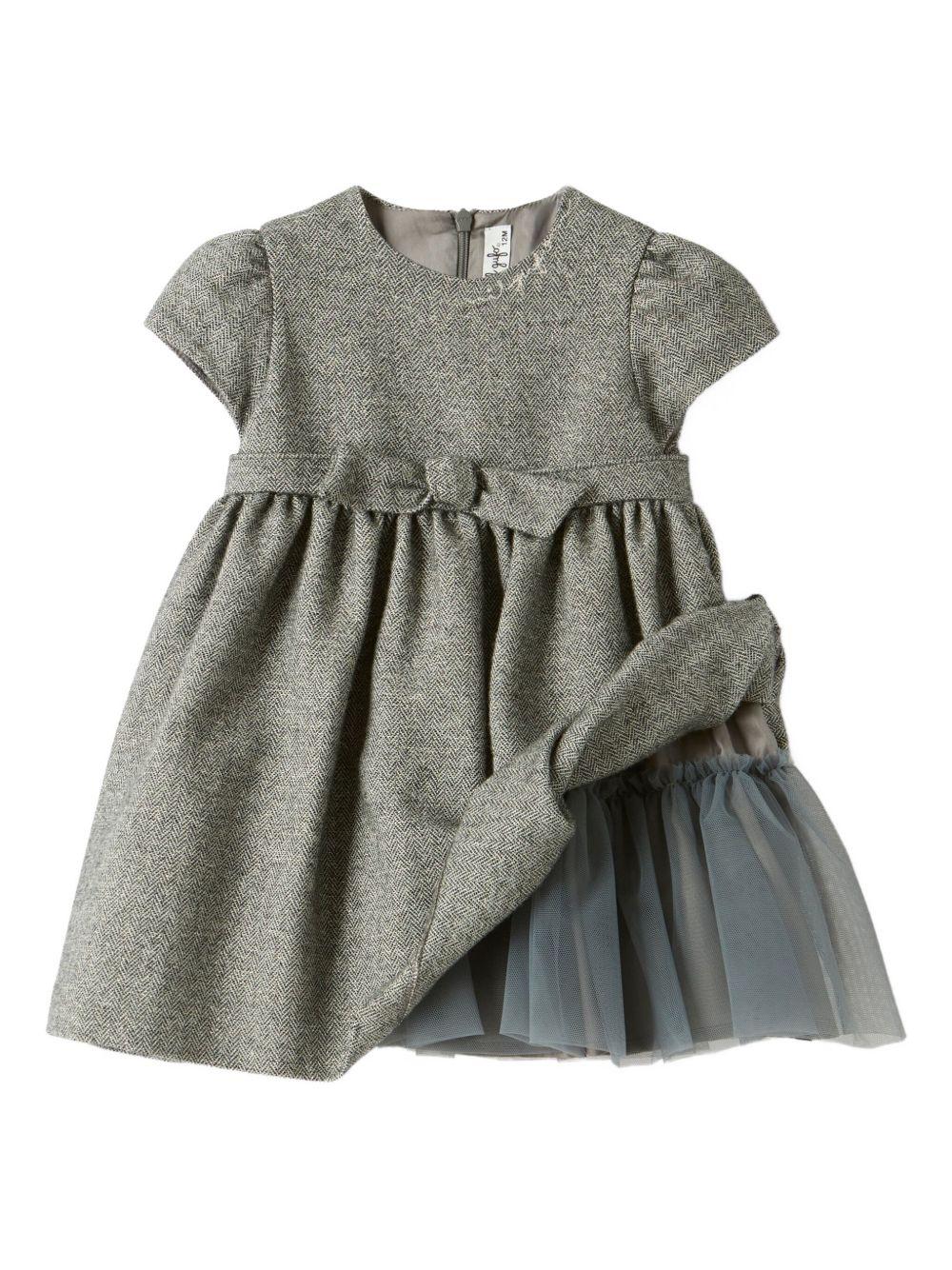Abito in mista lana grigia per neonata di Il Gufo Kids.
