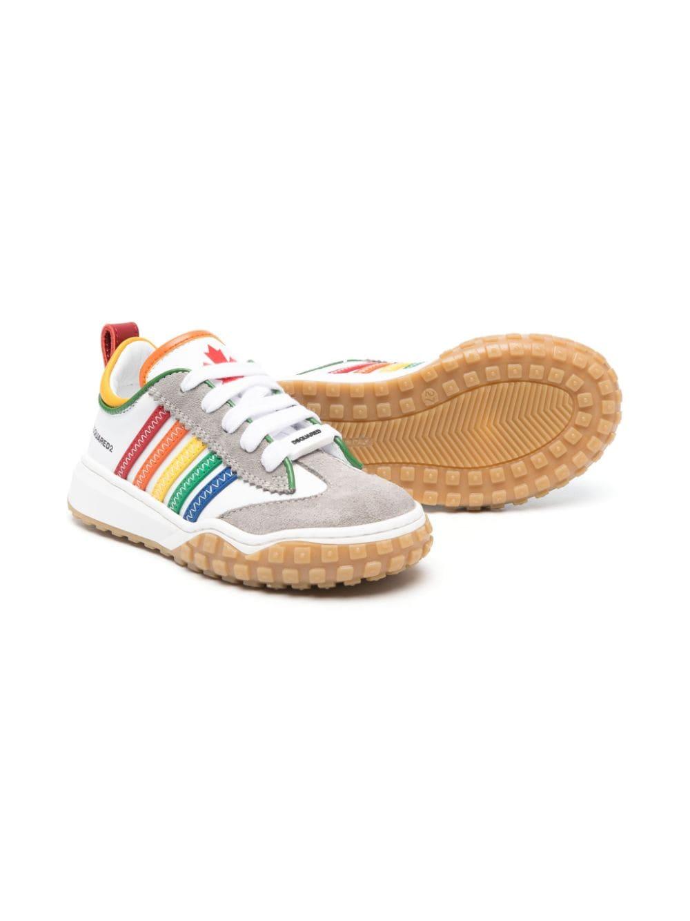 Sneakers bianche in pelle di vitello per bambino a righe mutlcilore con finiture a contrasto di DSQUARED2 KIDS.