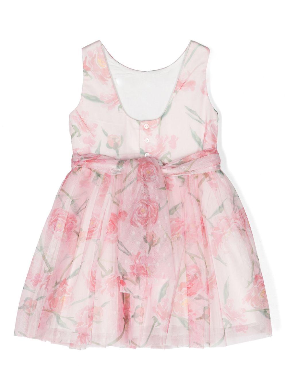 Abito rosa cipria in rete in tulle per bambina con stampa floreale all-over di Abel & Lula.