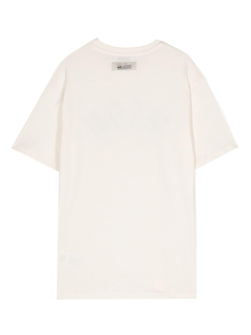 T-shirt panna in jersey di cotone per bambino con stampa logo sul davanti della collezione MSGM Kids.