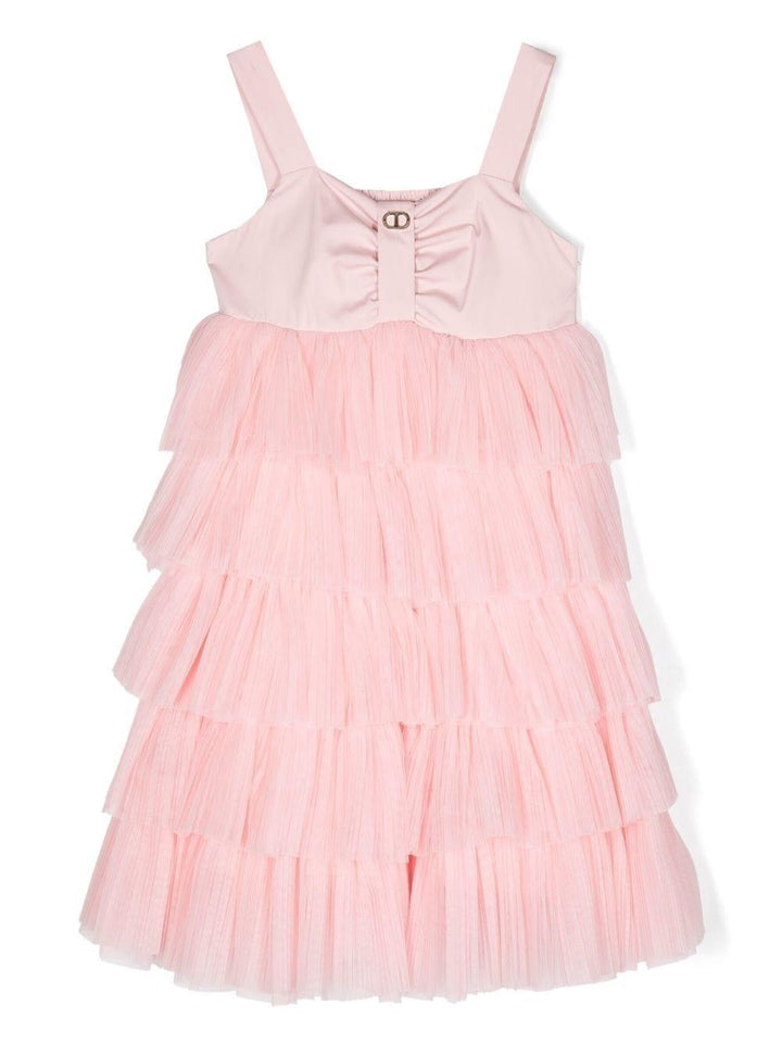 Abito rosa cipria a strati per bambina con rivestimento in tulle di TWINSET Kids.
