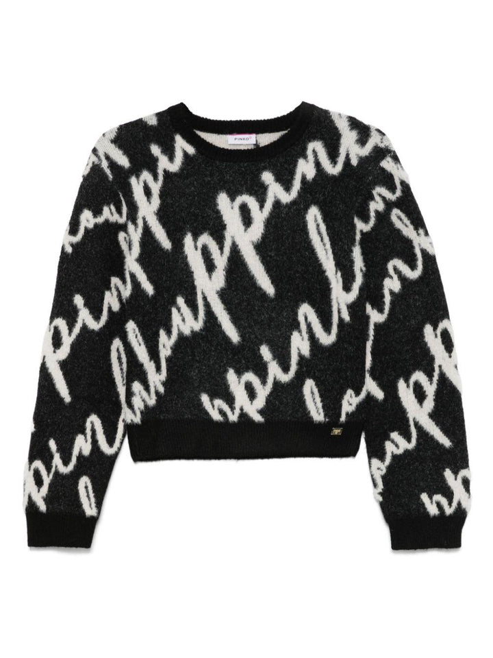 Maglione in maglia intarsiato nero/bianco per bambina di Pinko Kids.