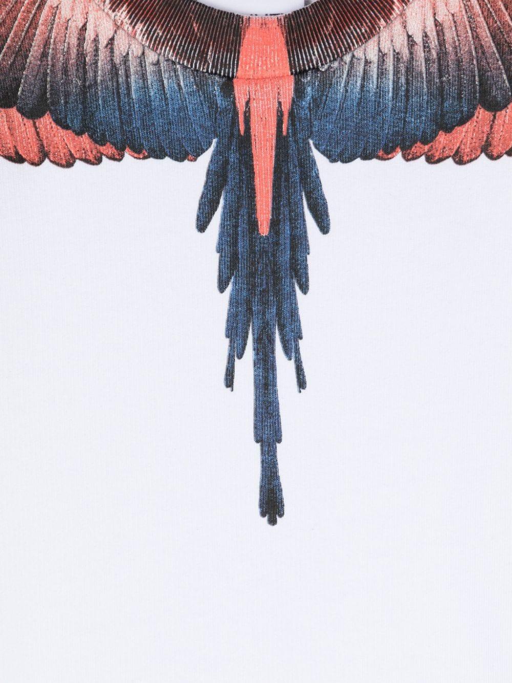 Felpa bianca in jersey di cotone organico per bambino con stampa Wings multicolore della collezizone Marcelo Burlon Kids.