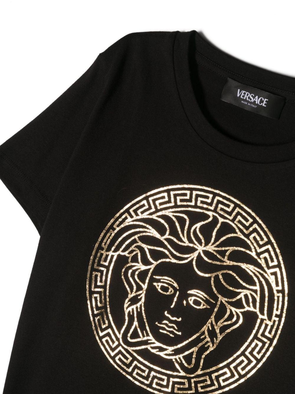 T-shirt nera in morbido jersey di cotone per bambini con Motivo Testa di Medusa colore oro di Versace Kids.