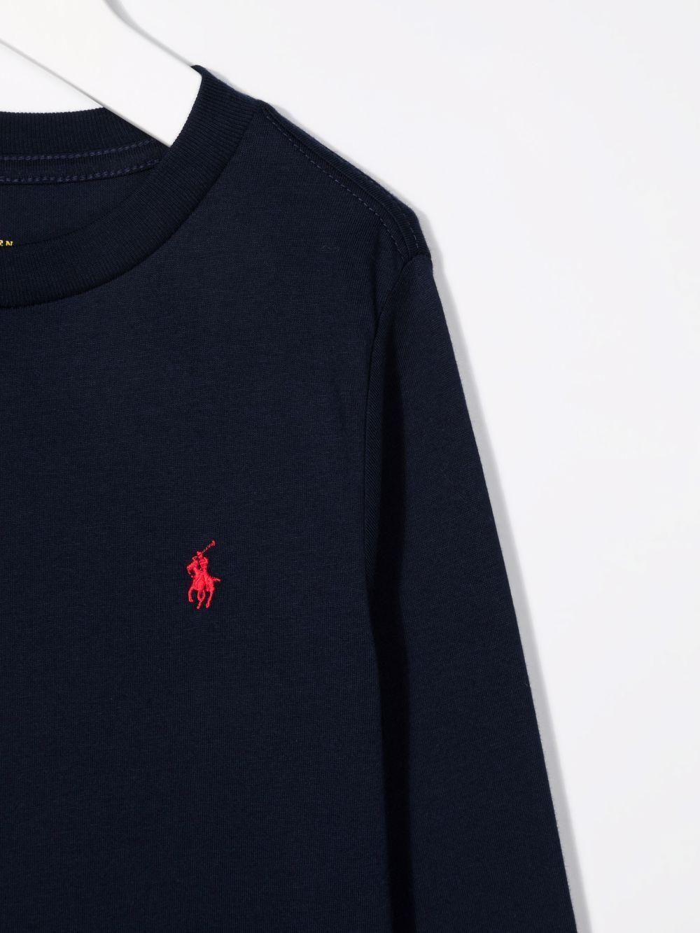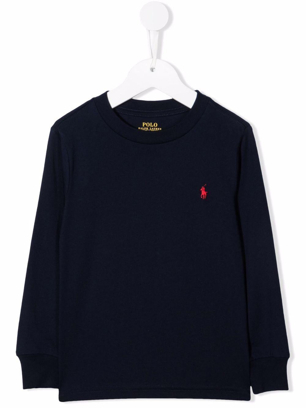T-shirt in cotone blu navy per bambino di Ralph Lauren Kids.
