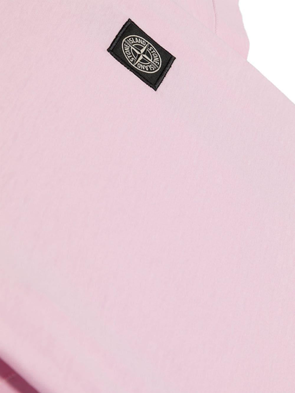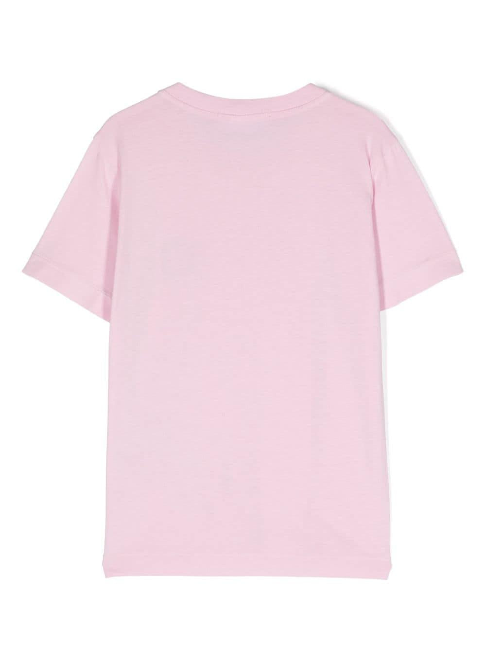 T-shirt rosa in morbido jersey di cotone per bambina con toppa di Bussola sul petto di Stone Island Kids.
