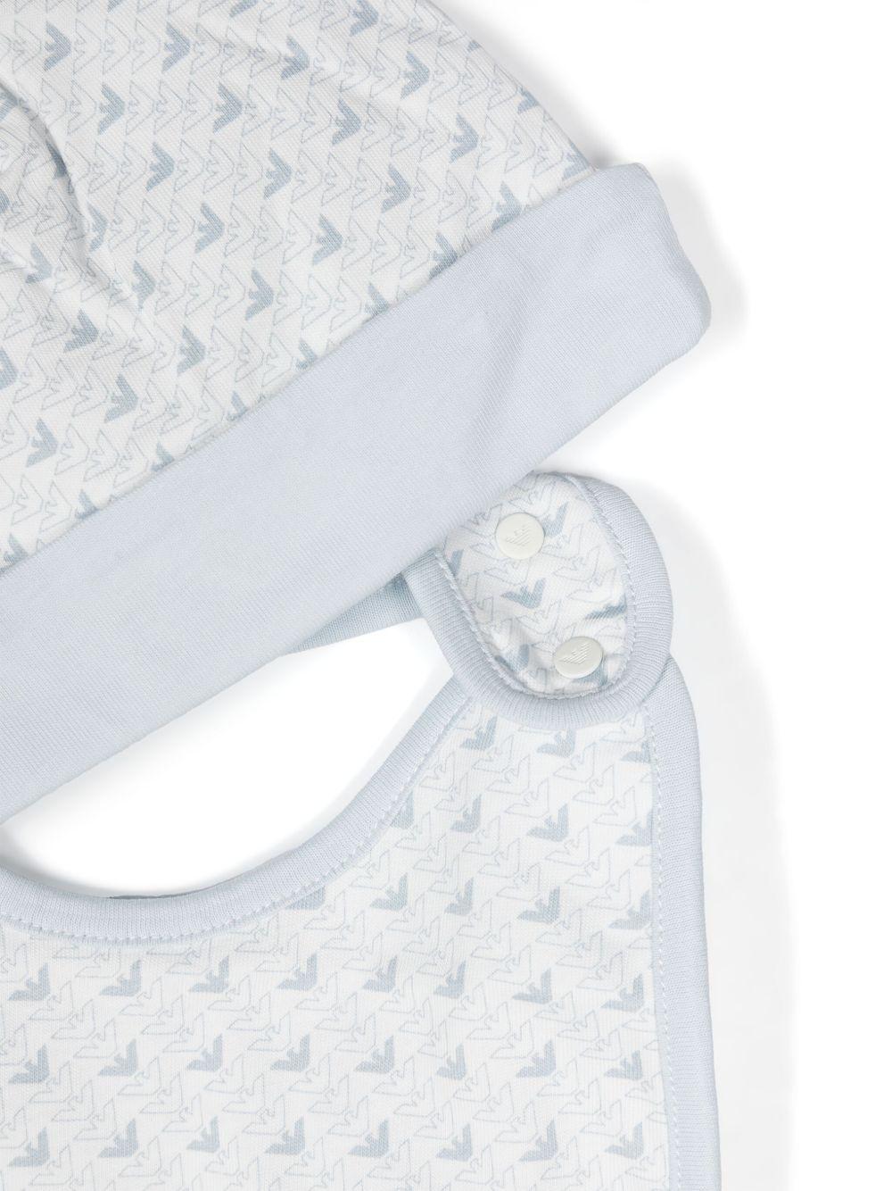 Tutina in jersey di cotone bianco/azzurro per neonato di Emporio Armani Kids.